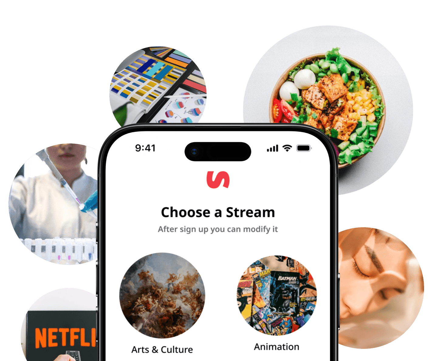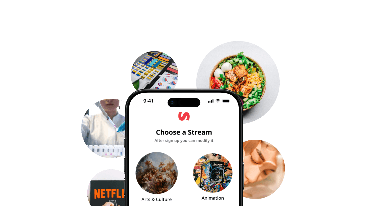 Instead of one endless feed, Streams lets you explore content by category—giving you complete control over what shows up.